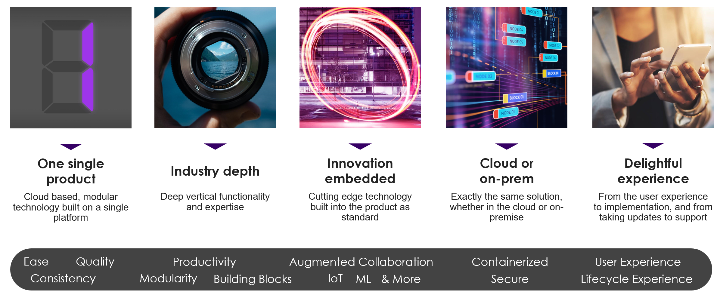 Our unique composable solution enables you to pick the capabilities you need today and add more later, all tailored to your industry and needs. Create your value chains or switch on new functionality to expand your solution and meet evolving needs quickly.