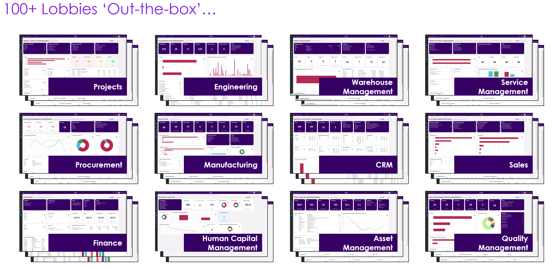 IFS supports configured Role Based Dashboards (IFS Lobby) as soon as they login to the application. This can bring together all key facts, tasks and performance indicators directly within the application. Any IFS data can be graphically represented with automatic drill down to the related transactional data within the system. As with the rest of the solution IFS lobbies are also mobile responsive and accessible